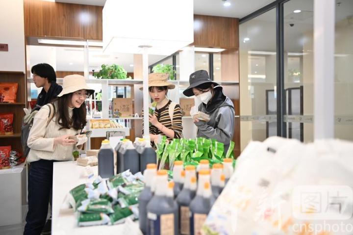 4月16日,甘肅省武威市古浪縣,學(xué)生們?cè)诎瞬缴硟缮綄?shí)踐創(chuàng)新基地參觀了解當(dāng)?shù)靥禺a(chǎn)。