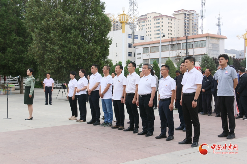 上午10時30分,紅軍會寧會師舊址松柏蒼翠、莊嚴肅穆,會師紀念塔巍然屹立。全體黨員在紀念塔前肅立,向紅軍英烈敬獻花籃,曹國林、趙杰上前扶正緞帶。隨后,大家一起向紅軍英烈三鞠躬,面對黨旗重溫入黨誓詞,深切緬懷紅軍英烈的豐功偉績。