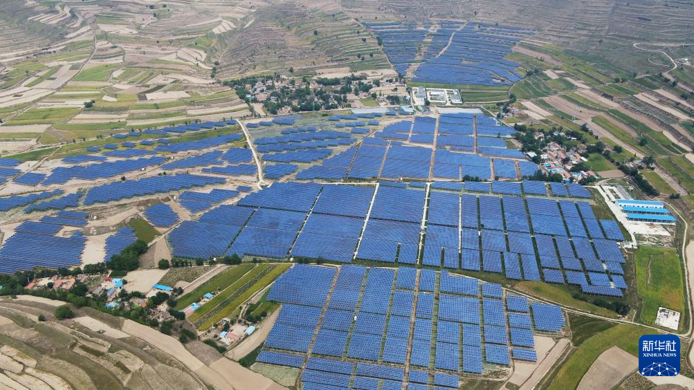 這是在通渭縣榜羅鎮(zhèn)四新村拍攝的光伏電站(9月9日攝,無人機照片)。新華社發(fā)(王克賢 攝)