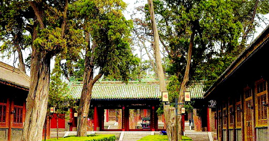 許多游客初來伏羲廟,對這里高大參天的千年古樹尤為喜愛。古柏蒼槐,叢郁繁茂,密嚴(yán)森列,為隴上之奇觀。宮門東的“龍槐”,為唐代所植。歷經(jīng)千年風(fēng)雨滄桑,樹干已空朽,而殘軀斷皮上又長出新枝,老樹換新顏,生機(jī)勃勃。
