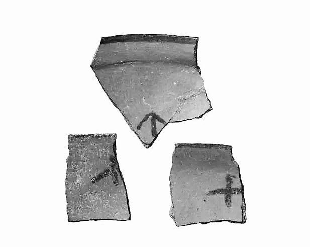 展廳還陳列有大地灣文化的彩繪符號,繪在缽形器殘片的內(nèi)壁上。紅彩、連續(xù)性不強或單獨個體的符號,介于圖畫和文字之間,種類有13種之多。這些符號已非單純的裝飾圖案,有些很明顯的是具有記事或表達某種意義的符號。大體可分兩類,一類是形似植物的符號,另一類是以直線或曲線構(gòu)成的符號。在仰韶早期彩陶缽的寬帶紋上,也發(fā)現(xiàn)類似的刻畫符號,兩者應(yīng)該有著密切聯(lián)系,這無疑為文字起源研究提供了重要資料和線索。郭沫若先生曾說“彩陶上的那些刻畫符號,可以肯定地說是中國文字的起源,或是中國原始文字的孑遺”。