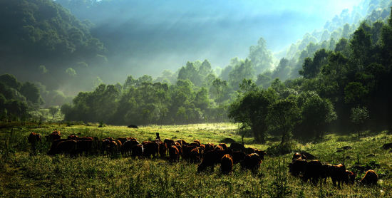 關(guān)山的地理特點(diǎn)既不同于南部秦嶺山地,也不同于周圍黃土高原,有人這樣評價(jià):隴坂滿目皆千仞,唯有關(guān)山以秀媚。這顯然指的是陜西省隴縣的關(guān)山牧場。既有牧場之名,往上追溯,我們能得出答案,關(guān)山一帶就是秦始皇祖先養(yǎng)馬的地方。
