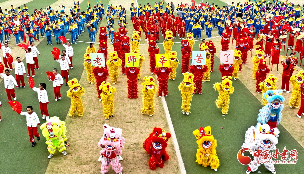 9月5日,在張掖市甘州區(qū)大成學(xué)校體育場上,舞龍、舞獅、踩高蹺、扇子舞、威風(fēng)鑼鼓、腰鼓、武術(shù)等38個社團(tuán)依次進(jìn)行成果展演,師生們在傳承中華民族的優(yōu)秀文化,探索向美而行的新路徑中,歡慶即將到來的第40個教師節(jié)。