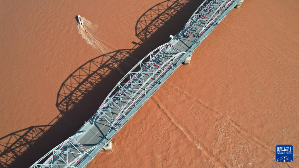 一艘快艇從黃河蘭州段中山橋下駛過(9月23日攝,無人機(jī)照片)。新華社記者陳斌攝