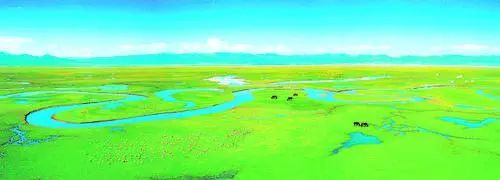 在這里,每看一眼都是風(fēng)景,每行一步都有故事,每一片土地都是一幅絕美的圖畫。黃河從云煙蒼茫的雪域高原流出,冰雪化為淙淙流水,沿途九曲回腸,匯納百川,留下一個個碧波蕩漾的湖泊,懷抱起一片片豐腴壯美的草原,孕育著一座座城鎮(zhèn)和村落,養(yǎng)育了各族兒女,播撒著希望,醞釀著生機(jī)……
