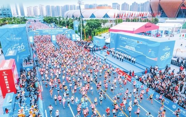 2024年5月26日7時30分,“蘭州銀行杯”2024蘭州馬拉松在蘭州奧體中心鳴槍開賽,來自美國、德國、澳大利亞、肯尼亞、韓國等22個國家和地區(qū)以及全國各地的4萬名選手相聚金城,用奔跑釋放生命活力。2024年是蘭州馬拉松新十年的開端之年,首次采用“全半程混合分區(qū)”的出發(fā)機(jī)制,并對賽道進(jìn)行優(yōu)化升級,將絲路文化、黃河文化融入?yún)①惙酮勁频脑O(shè)計中,還開展甘肅省博物館、甘肅簡牘博物館、蘭州市博物館、讀者雜志社的文創(chuàng)展銷活動,邀請參賽選手免費參觀9個景區(qū),為廣大選手提供更加優(yōu)質(zhì)、精彩的賽事體驗。