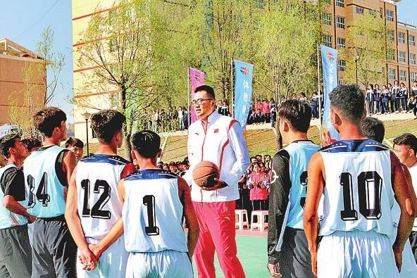 男籃前國手張兆旭在積石山與學(xué)生互動交流。
