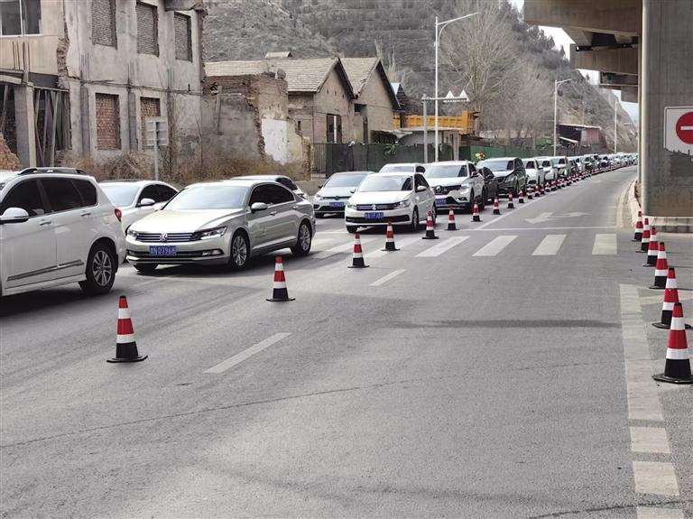 3月22日上午8時,通往大砂坪公墓區(qū)、甘肅臥龍崗人文紀念園的佛慈大街上車流量明顯增多,雖然車輛行駛速度緩慢,但整體秩序良好。在大砂坪橋公交站處準(zhǔn)備乘坐清明節(jié)掃墓臨時專線公交車前往公墓祭掃的市民排起了長隊。墓園附近,等待進入的車輛也排起了長隊,蘭州市交警支隊河北大隊交警引導(dǎo)祭掃車輛安全進出墓園停車場,保障路面交通暢通。