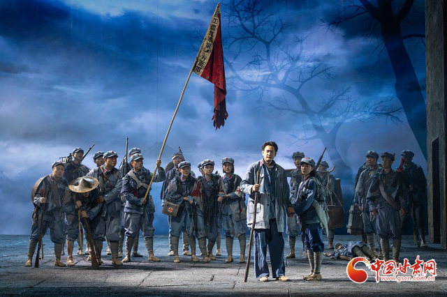 該劇以紅軍長征途經(jīng)甘肅哈達鋪的重要歷史事件為背景,通過藝術化的舞臺呈現(xiàn),生動展現(xiàn)了革命先輩的堅定信念與偉大精神。全劇通過人物群像與歷史瞬間的交織,彰顯信仰力量與軍民深情,以時空交織的敘事結(jié)構(gòu),穿插毛澤東與周恩來回憶對話的閃回場景,通過“序—八場—尾聲”的結(jié)構(gòu),串聯(lián)紅軍在哈達鋪的休整與決策過程,兼具歷史縱深感與戲劇張力。