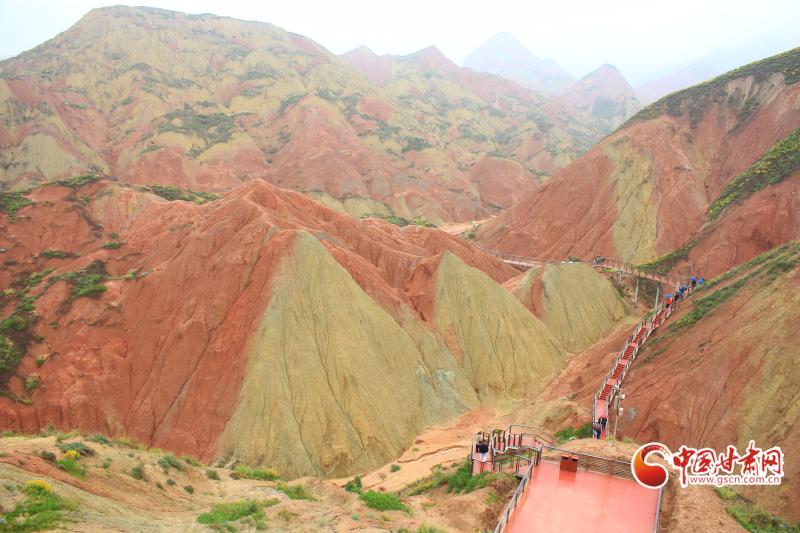 游客們乘坐觀光車(chē)沿途游覽,絲路霞光、九色丹青、丹頂攬勝等7個(gè)觀景平臺(tái)各具特色,山體色彩斑斕、紋理交錯(cuò),雨后更如水墨畫(huà)般淡雅別致,與北宋《千里江山圖》、元代《富春山居圖》的意境神似。