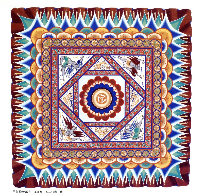 莫高窟,這座屹立于絲路要沖的藝術(shù)寶庫(kù),承載著無(wú)數(shù)先人的智慧與夢(mèng)想。其中,第407窟窟頂?shù)纳徎ㄈ迷寰?/span>是隋代具有代表性的藻井圖案之一。