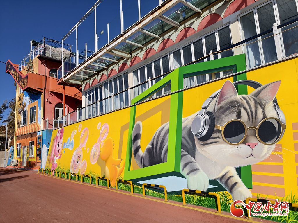 初冬蘭州蘭山,涼意漸濃,“煙雨蘭山”鄉(xiāng)村振興示范帶的童話彩繪卻讓這里成了市民的“造夢秘境”。低成本的藝術(shù)改造點亮墻面,連“0931號”蒸汽火車手繪也在此煥發(fā)光彩——車頭暖光里,Q版蘭州瓜果、土撥鼠串聯(lián)成列,宛如“童話專列”載著鄉(xiāng)愁與特產(chǎn)故事,邀人走進山間童話。