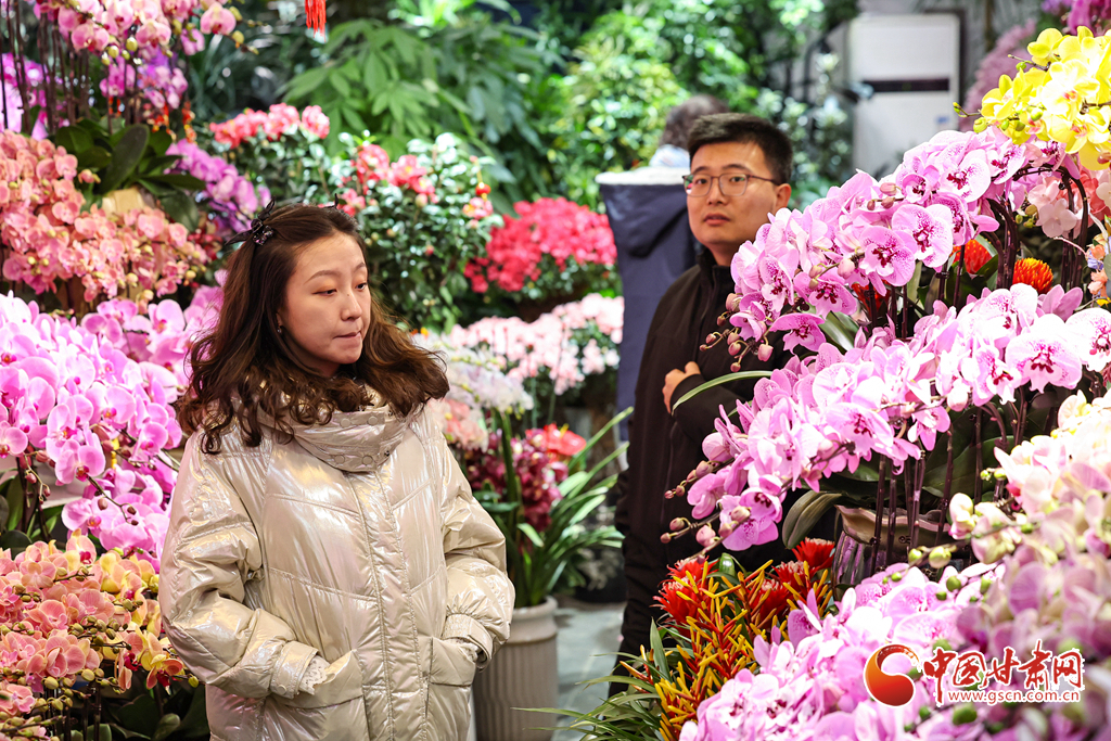 春節(jié)臨近,蘭州市各大花卉市場年宵花迎來銷售旺季。1月31日,在城關區(qū)芳草園花卉市場,各色蝴蝶蘭被擺在店鋪C位,繽紛色彩相互交織,與冬青、金桔搭配出滿滿年味。不少市民專門前來挑選蝴蝶蘭,希望將這份美好寓意帶回家中,用盛放的鮮花點亮新春,也讓年味更加飽滿溫馨。