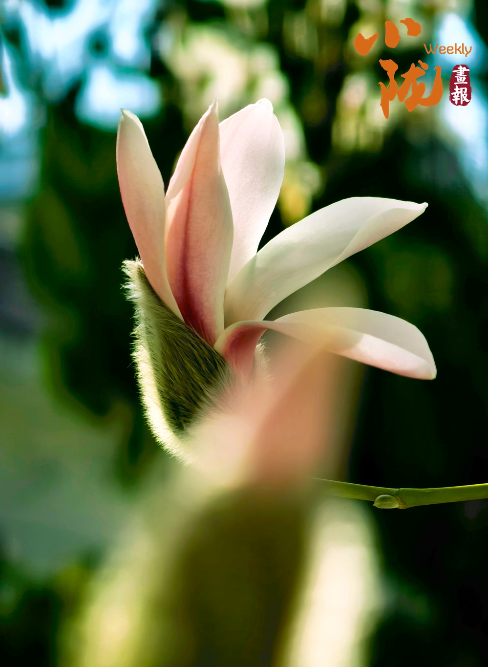 玉蘭花悄然綻放,花瓣外白內(nèi)粉,姿態(tài)溫婉,花萼上細(xì)密的絨毛透著春日的鮮活,一樹(shù)清新花影,盡顯高潔雅致。