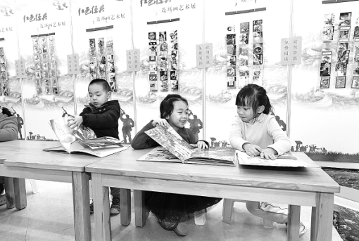 圖為不少小讀者在連環(huán)畫閱讀體驗區(qū)閱讀。