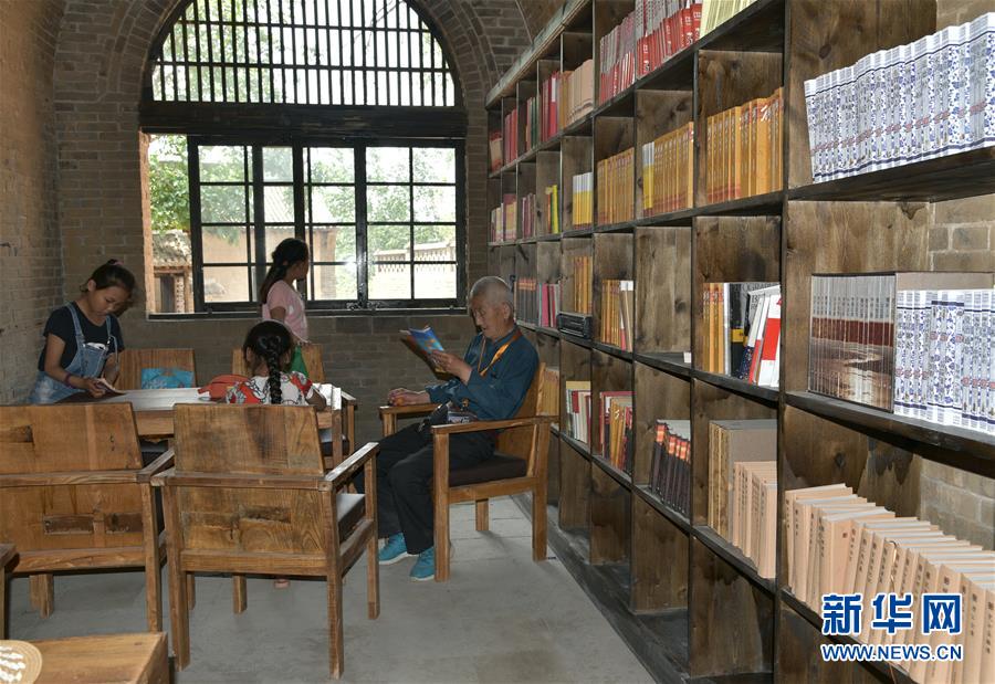 老苗書館就是在其中一處窯洞上修建而成。“這個(gè)院子共有8口窯洞組成,一百多年前由一戶苗姓人家修建,所以取名老苗書館。”51歲的苗樹生是書館的第一任館長(zhǎng),也是建設(shè)者之一。“我們是24小時(shí)開放,村民可以把書拿回家,還可以把家里的書拿來換著看,整個(gè)書館藏書5萬多冊(cè),很多都是黨員干部和志愿者捐來的。”苗樹生說。