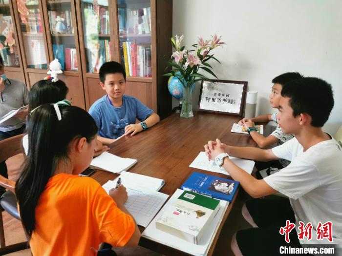 在書香樂園鄰里圖書館,小館長(zhǎng)莫岱妮正組織同學(xué)在家里進(jìn)行古詩(shī)詞競(jìng)猜游戲?!?yīng)妮 攝