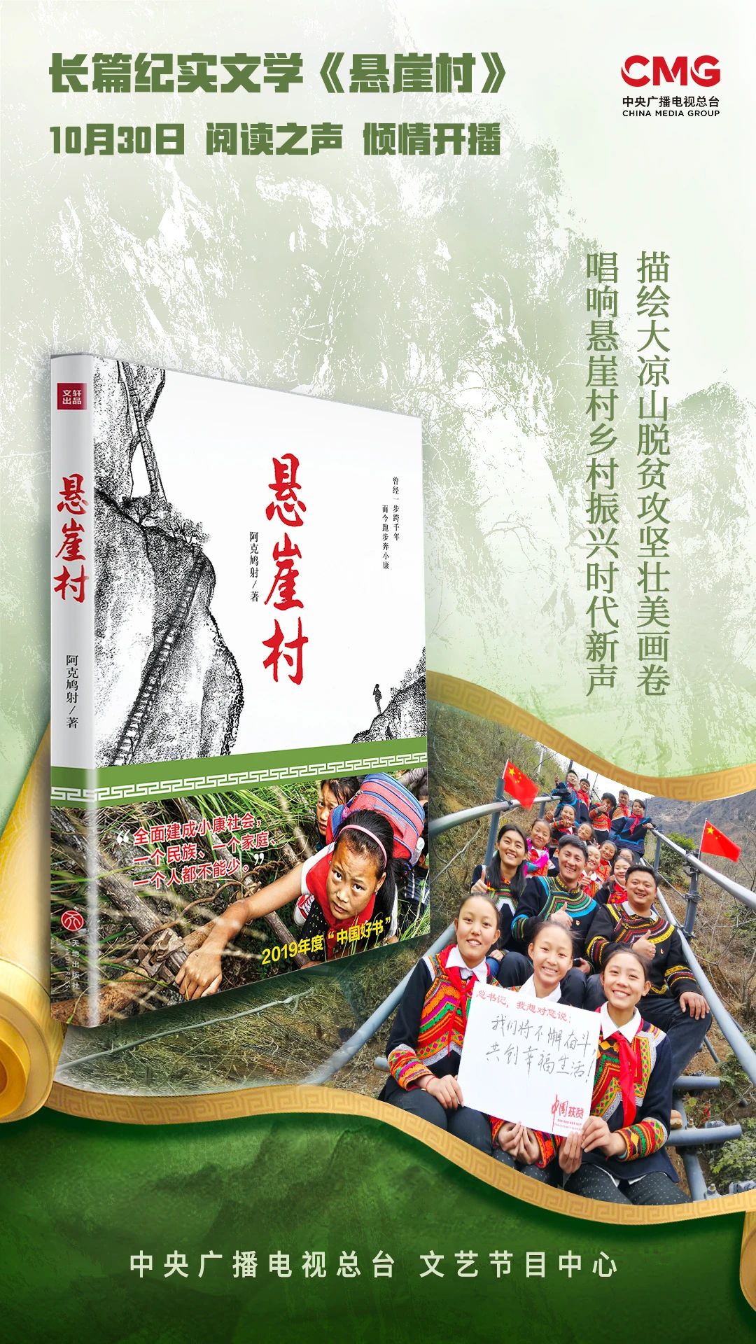 長(zhǎng)篇紀(jì)實(shí)文學(xué)《懸崖村》于10月30日起在中央廣播電視總臺(tái)閱讀之聲開(kāi)播,同時(shí)上線新媒體。