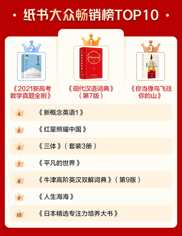 高考是中國(guó)大多數(shù)學(xué)生的必經(jīng)之路,想要從萬人中脫穎而出,需要付出許多的努力。從京東圖書數(shù)據(jù)不難看出,攻克數(shù)學(xué)難關(guān)已成為萬千學(xué)子的重要任務(wù),在2020年最暢銷的大眾新書和最暢銷的大眾紙書中,《2021新高考數(shù)學(xué)真題全刷》分別排名第一、第二。