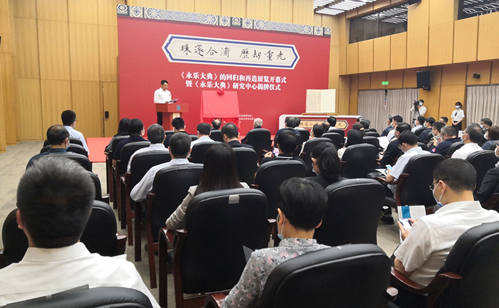 5月31日下午,“珠還合浦 歷劫重光——《永樂大典》的回歸和再造”展覽開幕式暨《永樂大典》研究中心揭牌儀式在國家圖書館舉行。