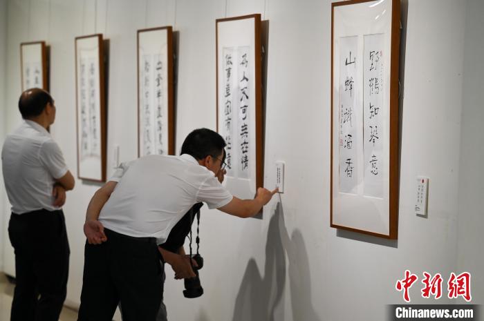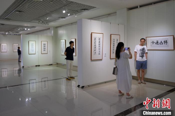 圖為觀眾在書(shū)法展上拍照留念?!『闻罾?nbsp;攝