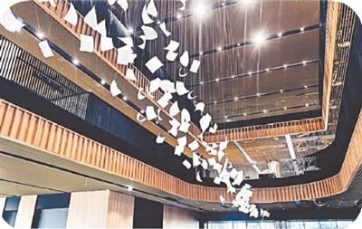 走進(jìn)大廳,英國(guó)藝術(shù)家保羅·考克斯基在挑高大廳創(chuàng)作的公共藝術(shù)作品“陣風(fēng)”映入眼簾。上千本白紙書頁(yè)隨風(fēng)騰飛的瞬間在空中凝結(jié)下來,象征著閱讀的快樂與思考,震撼的畫面宛如置身充滿藝術(shù)氣息的美術(shù)館。