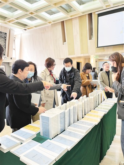 中場休息,與會(huì)專家學(xué)者圍著叢書第一輯熱烈交談。