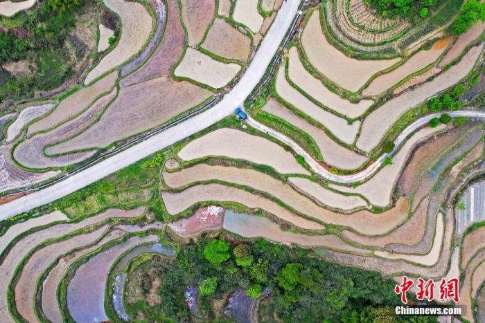 資料圖:春耕時節(jié)彎彎曲曲的梯田。 黃河 攝
