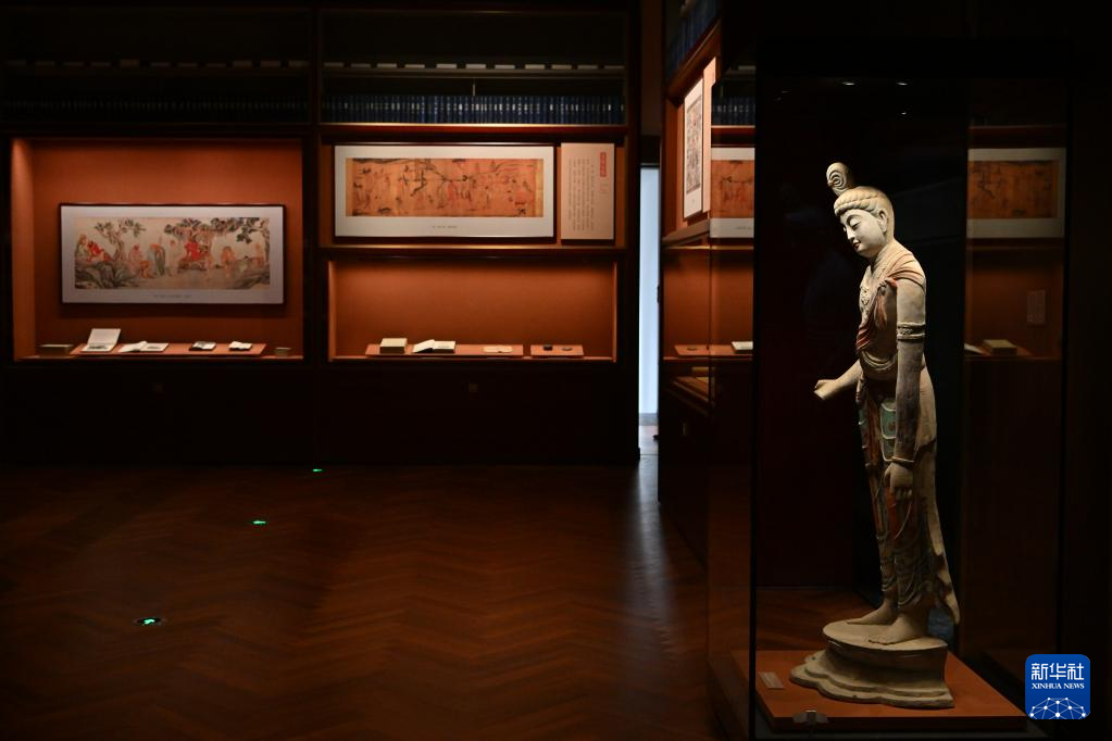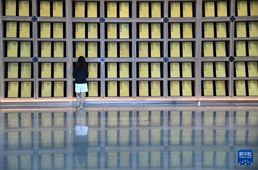 這是在北京拍攝的中國(guó)國(guó)家版本館中央總館內(nèi)的展覽陳設(shè)(7月23日攝)。