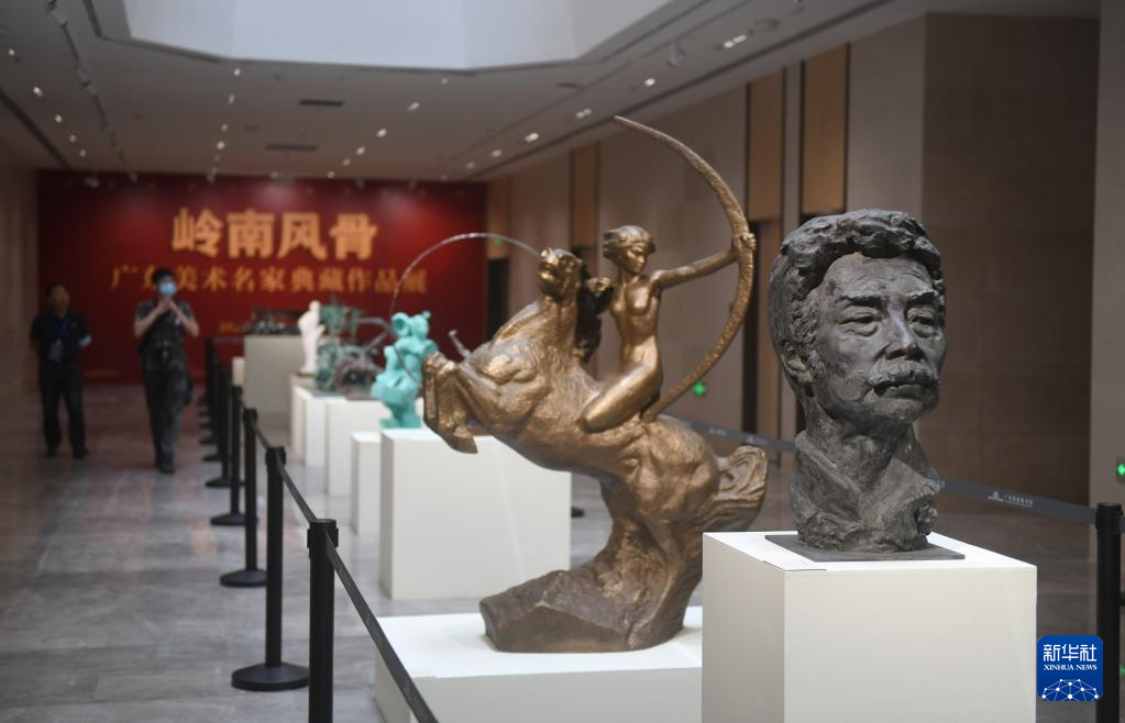 中國(guó)國(guó)家版本館廣州分館里展出的雕塑作品(7月22日攝)。