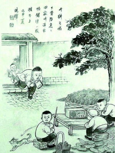 甫一翻閱,我就被深深吸引住了,欲罷不能,用半天的時間,集中讀完了其中的一冊。畫家描繪的正是我的冀中平原故鄉(xiāng)的風(fēng)光民俗,每一幅畫面,都仿佛是自遙遠(yuǎn)的時光彼端發(fā)出的一封請柬,邀我回返五十年前的上個世紀(jì)六七十年代,回到在故鄉(xiāng)農(nóng)村度過的童年,重新體驗?zāi)欠N快樂無比的心境。