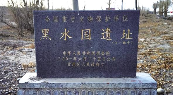 在于右任老先生寫詩后的自注,“甘州西黑水河岸古墳占地十余里,土人稱為‘黑水國(guó)’,掘者發(fā)現(xiàn)中原灶具甚多,遺骸脛骨皆長(zhǎng)……”古黑水國(guó)遺址坐落在甘肅省張掖市甘州區(qū)西北17公里處,該遺址又稱黑水國(guó)城堡,俗稱黑水國(guó),民間亦稱甘州老城,是“絲綢之路”上的著名驛站,距今有4000多年的歷史,是集漢唐古城、史前遺址、古寺院遺址、古屯莊、古墓葬為一體的龐大的甘州“歷史古籍”,也是集古代人文風(fēng)光、沙丘、湖泊、蘆蕩、濕地為一體的河西“特色畫冊(cè)”,在考古界有“河西走廊文物寶地”之稱,1908年由俄羅斯考古學(xué)家和探險(xiǎn)家彼得·科茲洛夫發(fā)現(xiàn)并發(fā)掘,它的發(fā)現(xiàn)是當(dāng)時(shí)震驚中外的考古學(xué)大事件,2001年,古黑水國(guó)遺址被國(guó)務(wù)院公布為全國(guó)重點(diǎn)文物保護(hù)單位。