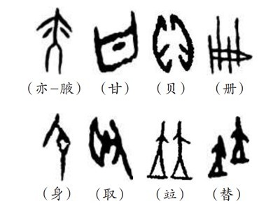 “象形者,畫成其物,隨體詰詘”(《說文·敘》),是根據(jù)客觀物象的形態(tài)輪廓來構(gòu)成文字符號(hào)的方法。象形字又稱作“文”,“文者,物象之本”。如“貝”就是一個(gè)海貝的象形,也指貨幣;“冊(cè)”,就是由竹簡(jiǎn)編起來的簡(jiǎn)冊(cè)的象形;“身”為妊娠的形象,突出腹部。