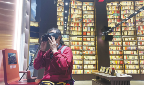 讀者在福州安泰書城體驗(yàn)5G閱讀。 朱丹丹 攝