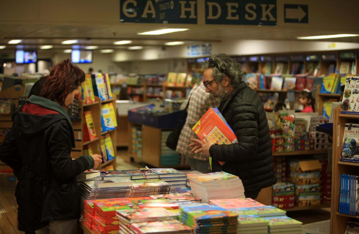 2月13日,在約旦亞喀巴港,人們在“望道號”上挑選書籍。