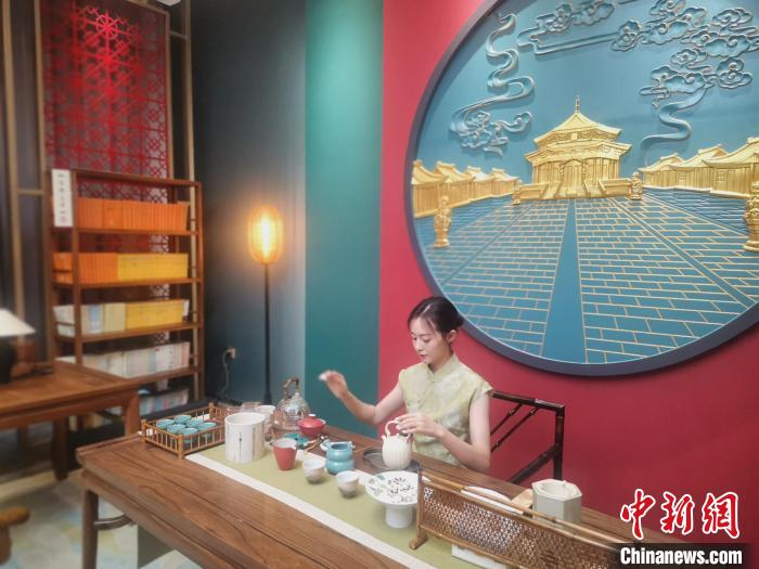 中新網(wǎng)沈陽4月19日電(記者 趙桂華 王藝霖) 中式園林的實景幕墻掩映著古風(fēng)桌椅、宮廷地?zé)簟⒅惺綍艿任⒕坝^,讓讀者暢游書海的同時,仿佛置身中國古代書院書房之中。