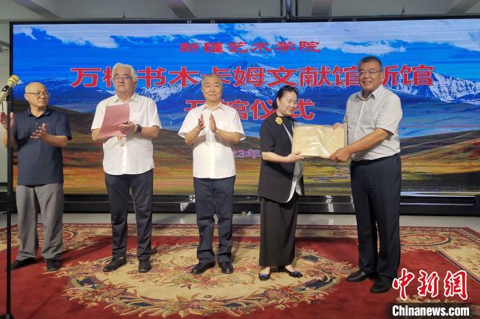 中新網(wǎng)烏魯木齊7月20日電 (胡嘉琛)“木卡姆記譜手稿不應(yīng)塵封在書(shū)柜,應(yīng)當(dāng)讓更多人了解它、傳承它。把它交到專(zhuān)心做研究的學(xué)者手中,我很放心。”萬(wàn)桐書(shū)之女萬(wàn)靜20日在新疆烏魯木齊說(shuō)。當(dāng)日,萬(wàn)桐書(shū)木卡姆文獻(xiàn)館新館在新疆藝術(shù)學(xué)院開(kāi)館,萬(wàn)靜將萬(wàn)桐書(shū)1952年至1957年間收集整理的木卡姆記譜手稿贈(zèng)給校方。