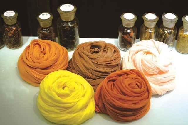 而與大多數(shù)傳統(tǒng)色彩研究者不同的是,曾啟雄極為重視實驗考證。作為一位技藝精湛的染色家,其論著里介紹傳統(tǒng)染色的文本內(nèi)容及圖片,都是他親歷親為、反復(fù)實驗后的成果,這也是該書最為精彩之處。在染色實驗過程中,除了復(fù)原了傳統(tǒng)顏色的本來面貌外,作者還做出如下貢獻(xiàn):首先,通過大量實驗印證了古籍記載的真?zhèn)?,并糾正了其中一些不實之處。比如,他通過在柘木里添加明礬、高溫染色后的結(jié)果,顛覆了以往認(rèn)為唐代帝王穿用的“柘黃”袍服是暗淡赭黃色的普遍認(rèn)知,印證其應(yīng)為類似明清時代帝王使用的明黃色。其次,使用不少篇幅介紹了不同的染料、媒介物等因素對于染色效果等的制約作用。以石榴皮作為染材為例,當(dāng)它與不同媒染劑,如明礬、鐵等進(jìn)行染色時,則會形成由黃色到黑褐色的不同顏色。即使采用相同的染法,因棉麻絲綢等介質(zhì)迥異,也會染出不同顏色等。最后,該書對于各種染料特點、工藝程序、顏色效果等的表述,較其他相關(guān)論著也更加纖悉無遺和引人入勝,如關(guān)于紫膠蟲的染色工序的詳盡介紹等,讓讀者有一種身臨其境、意欲參與的感受。