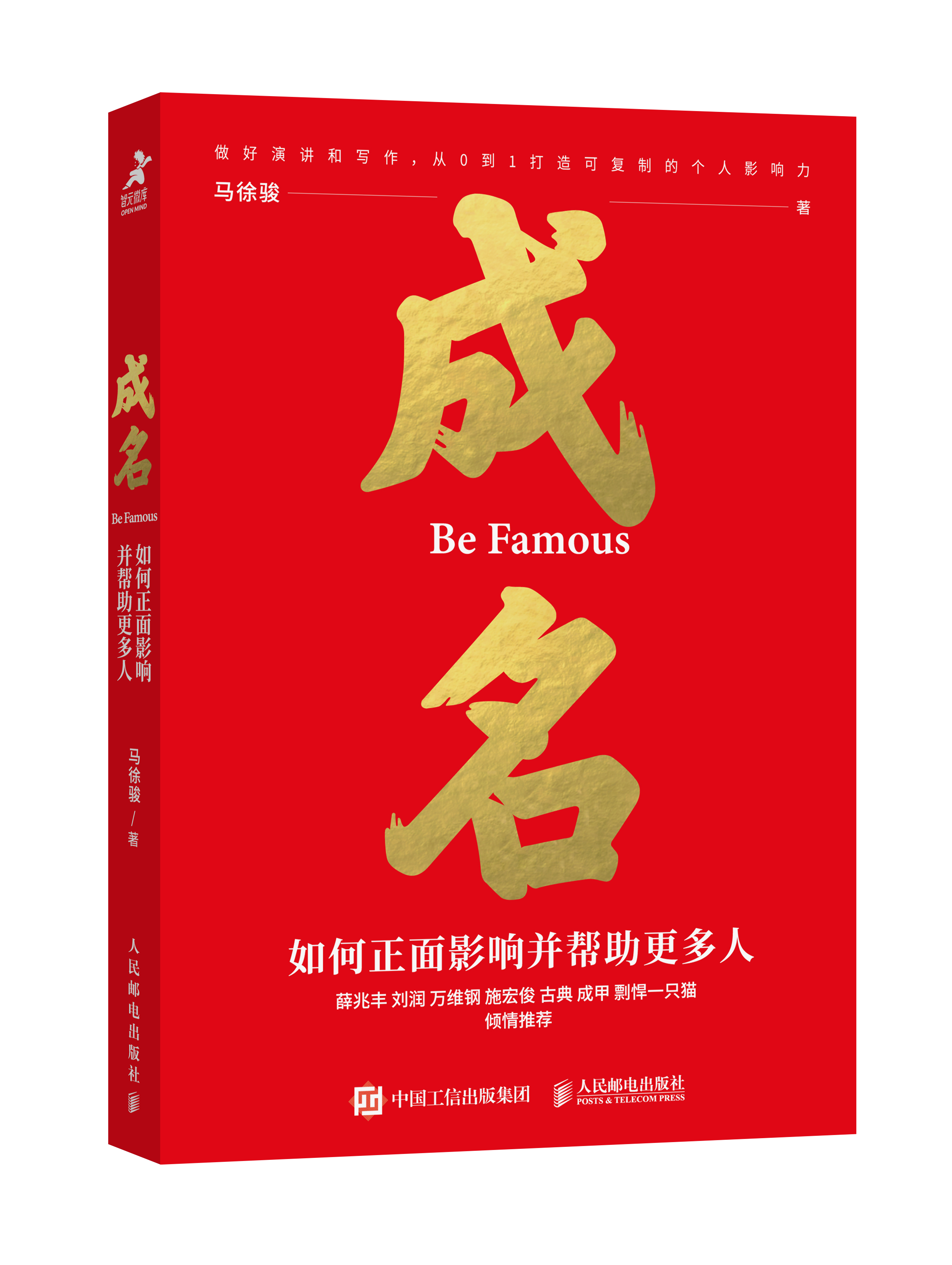 《成名》是一本看得懂、學(xué)得會、用得上的個人影響力打造手冊,展示了馬徐駿對打造好演講、寫出好文章的心得和路徑,有助于提升個人及團隊內(nèi)容造詣,通過演講、寫作放大聲量,正確借助名望正面影響并幫助更多人。