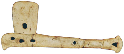 一件有柄穿孔陶斧引發(fā)關(guān)注。它由泥質(zhì)紅陶制成,分柄和穿孔斧兩部分,柄為橢圓形棒狀,前粗后細(xì),前端翹起,有淺槽可嵌入穿孔斧。槽后有三孔,可穿繩縛住穿孔斧,使其固定在槽內(nèi)。柄后端作半月形,并有三角形穿孔。這件有柄陶斧雖非實用工具,但為當(dāng)時穿孔石斧的裝柄方法提供了實物證據(jù),讓我們能想象它的功能。陶器基本是素色,器類齊備、器形多樣,鼎、鬶、缽、杯、盆、瓶、壺、豆等應(yīng)有盡有。有的夾砂陶中摻雜有蚌殼粉末,體現(xiàn)水鄉(xiāng)地域特點。青墩陶器造型穩(wěn)重、優(yōu)美,線條簡練而充滿動感,顯示出史前青墩人對于生活的感受。