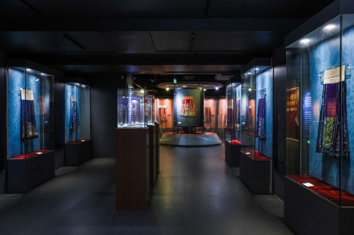 “衣生萬(wàn)物 傳統(tǒng)重構(gòu)——五色華彩馬面裙”展覽探尋和呈現(xiàn)馬面裙的歷史以及中國(guó)古人的制衣智慧與美學(xué)風(fēng)尚,近百條傳統(tǒng)馬面裙實(shí)物及多件當(dāng)代創(chuàng)新設(shè)計(jì)將持續(xù)展出至7月18日。展覽運(yùn)用了“五行五色”中國(guó)傳統(tǒng)色彩觀念,將展區(qū)分為赤、藍(lán)、黃、白、黑五個(gè)正色板塊,以及綠和多彩(月華裙)等間色板塊。在展示方式上,傳統(tǒng)馬面裙以平面展示為主,當(dāng)代創(chuàng)新設(shè)計(jì)的馬面裙則以人臺(tái)的立體展示為主。