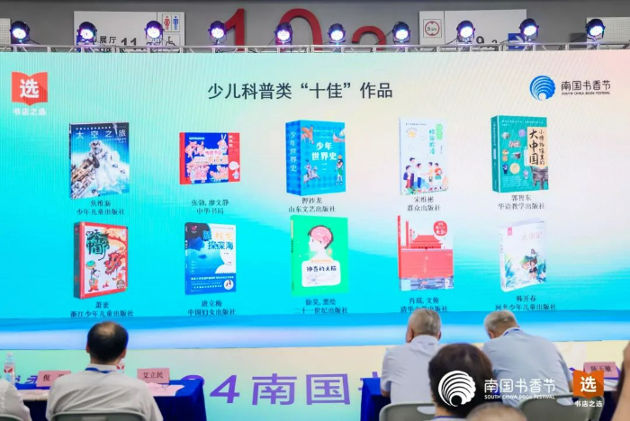 活動現(xiàn)場,嘉賓依次揭曉五大類“十佳”作品入選名單。今年入選的50部作品,延續(xù)了往屆“十佳”作品品質(zhì)閱讀要求,緊貼時勢,包羅萬象,不乏“新質(zhì)生產(chǎn)力”等熱點話題。同時,我們也很欣喜的看到,在兒童文學、少兒科普領(lǐng)域,涌現(xiàn)出不少新生代原創(chuàng)作者。