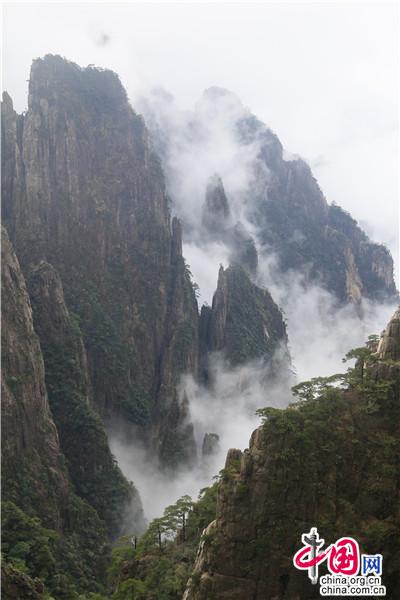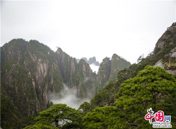 4月1日,黃山西海大峽谷和蓮花峰結(jié)束冬季封閉,對(duì)游客開放。今天景區(qū)天氣陰到多云,有時(shí)霧氣彌漫,近處松針蒼翠,低矮的灌木冒出絲絲綠芽,黃山木蘭含苞欲放,遠(yuǎn)處山峰籠罩在茫茫霧氣里,好像戴上了一頂白色的帽子。忽然一陣風(fēng)刮來,峽谷中霧氣升起,仿佛千軍萬馬奔騰,忽然霧氣散去,峽谷中青翠如洗,青黛色的崖壁上,黃山松蒼勁挺立,遠(yuǎn)處的山巒霧氣縷縷升騰,仿佛白紗飄舞。