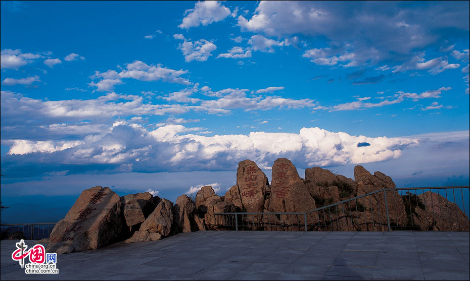 當(dāng)北京的第一縷陽光從這里升起。站在海拔2118米的頂峰平臺上,遙望東方,天際中開始露出幾抹灰色的浮云,隨后不斷地升騰、擴(kuò)大,繼而天邊漸紅,紅色越來越深,范圍越來越大,曙光漸露,丹霞輝映,把整個東方都變成濃濃的紅色。山峰在云霧中時隱時現(xiàn),彩云在天際間變幻,有時像奔馳的駿馬,有時像仙女飄逸,有時像玉樹瓊宮……千姿百態(tài),遐想無窮。猛然,比紅色的彩云更火紅、更光亮、更鮮艷的太陽露出了一條邊弧,緩緩上升。四周的云霧似乎忍受不了她那光茫的照射而淡化、隱退,太陽則很快掙脫了云霧與夜色的纏繞,迅速地上升,躍出天邊。霎時,一輪紅日噴薄而出,金光四射,霞光瑞氣,照徹天宇,山巒、萬樹沐浴著朝陽的金輝,令人眼花繚亂。舉目四望,朝霞映照下的霧靈山,群峰起伏,云霧如海,波濤洶涌,九曲十八彎的旅游公路似戲水游龍,在峰巒間若隱若現(xiàn)。