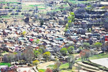 村內(nèi)莊院和山頂栽植有大片桃林,每逢陽春季節(jié),花滿枝頭,景色迷人。漫步其間,微風(fēng)拂面,鳥語花香,藍天白云,呼吸著清新鄉(xiāng)野空氣,時間仿佛都在此停頓。
