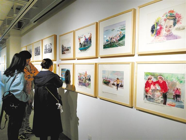 連環(huán)畫藝術家用手中的筆將紅旗渠自力更生、艱苦創(chuàng)業(yè)、無私奉獻的精神娓娓道來;一張畫紙,多圖呈現(xiàn)出我國鐵路日新月異的變化……在廣袤的祖國大地上,從來不缺多彩的中國故事。市民吳女士帶孩子前來觀展,在這些畫作前,她循著連環(huán)畫的注釋說明為孩子講述故事脈絡,她認為,“架上連環(huán)畫”有畫面,有故事,有文字,容易讓孩子理解作品內容??梢哉f“架上連環(huán)畫”是對傳統(tǒng)連環(huán)畫在藝術語言和表現(xiàn)形式上的革新。