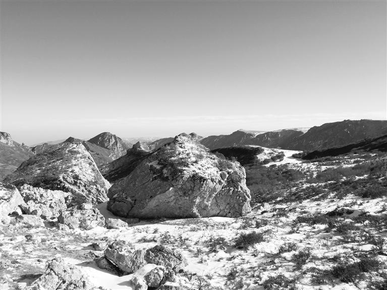 隨著海拔的升高,植被由灌木變?yōu)楦呱讲莸?,空氣也變得更加清冷,雖然寒風(fēng)呼嘯著從耳邊吹過(guò),如刀割般刮在臉上讓人不寒而栗,但視野變得越來(lái)越開闊,心境也變得越來(lái)越廣闊,遠(yuǎn)山白云藍(lán)天越來(lái)越近,塵囂遠(yuǎn)遁,浮華殆盡的感覺(jué)油然而生。