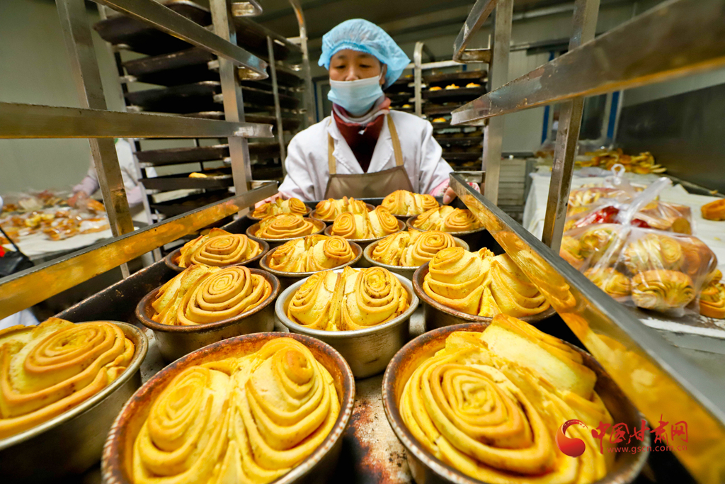 1月6日,甘肅民樂縣隴上鄉(xiāng)村農(nóng)業(yè)科技公司鄉(xiāng)村饃饃加工車間里員工正在精心包裝“花饃饃”。