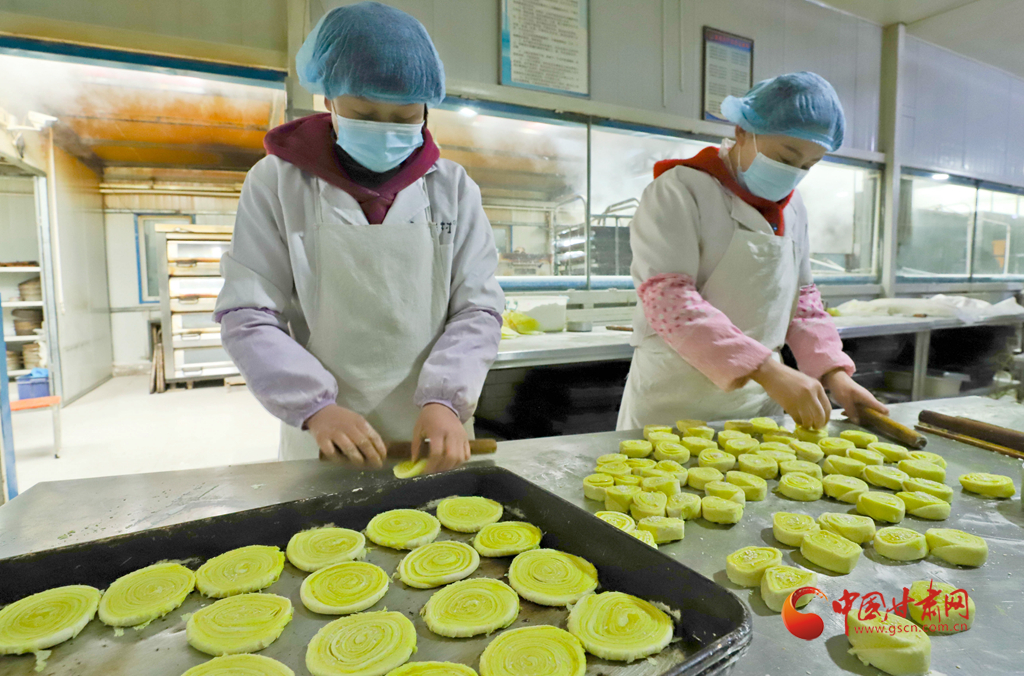 1月6日,甘肅民樂縣隴上鄉(xiāng)村農(nóng)業(yè)科技公司鄉(xiāng)村饃饃加工車間里員工正在精心制作“花饃饃”。