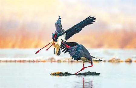 黑鸛不僅會(huì)捕魚,還是珍稀的保護(hù)動(dòng)物。黑鸛有兩條大長(zhǎng)腿,常在濕地邊緣的淺水區(qū)域活動(dòng)覓食,因此是涉禽而不是游禽,有時(shí)它也到水邊的陸地上活動(dòng)。黑鸛身披黑白二色,加上大紅色的眼圈、長(zhǎng)嘴,色彩搭配既強(qiáng)烈又前衛(wèi)。它是我國(guó)體型最大的食魚水鳥之一,飛行遷徙能力很強(qiáng),在歐、亞、非大陸都有分布,但近年來(lái)國(guó)內(nèi)的種群數(shù)量下降明顯,已成為國(guó)家一級(jí)保護(hù)動(dòng)物,珍稀程度可以說(shuō)不亞于大熊貓。